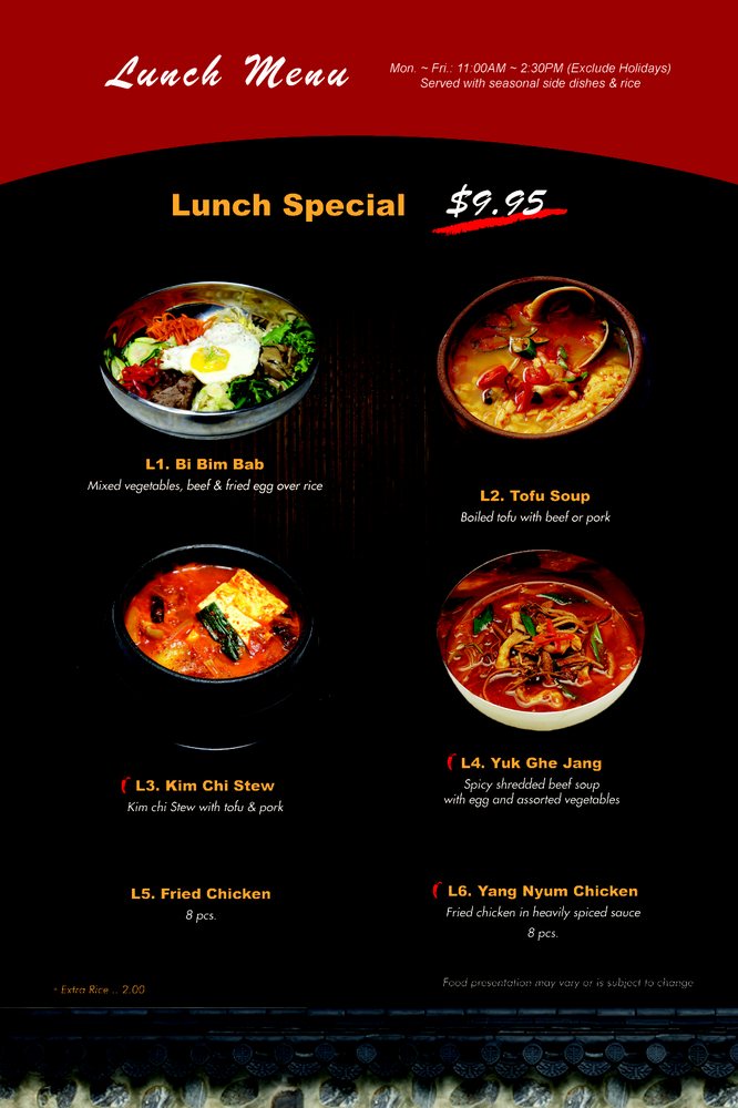 (2~3 persons) comes with Deung-Sim, Ju Mul Luck, Cha Dol Ba Gi, and choice of Samgyeopsal or Hang Jung Sal.